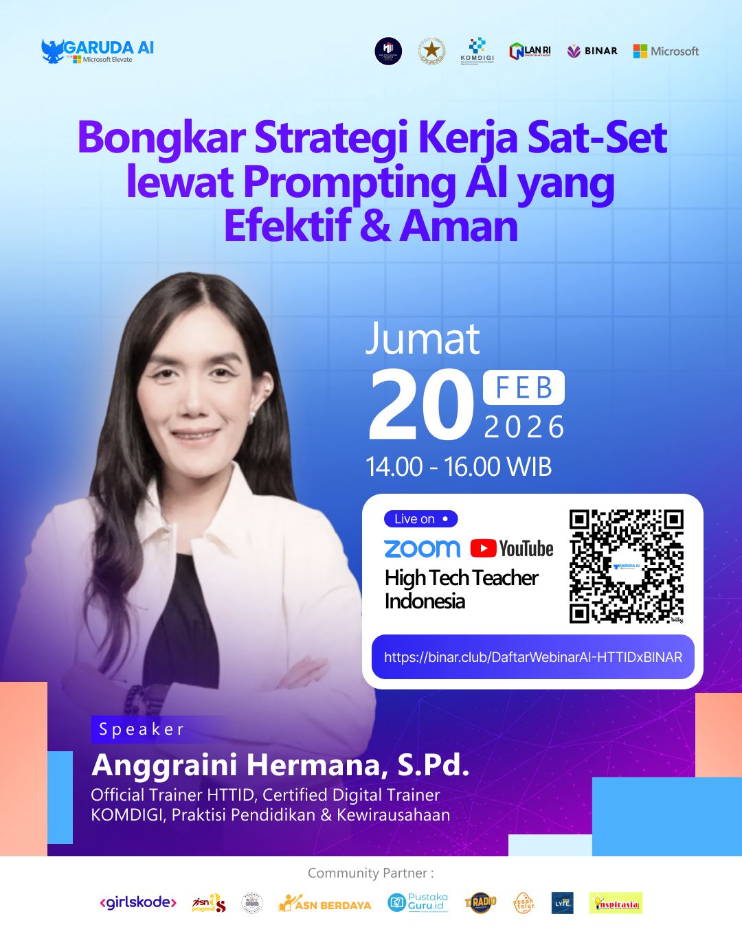 Webinar Nasional GARUDA AI x High Tech Teacher Indonesia x BINAR “Bongkar Strategi Kerja Sat-Set lewat Prompting AI yang Efektif & Aman”