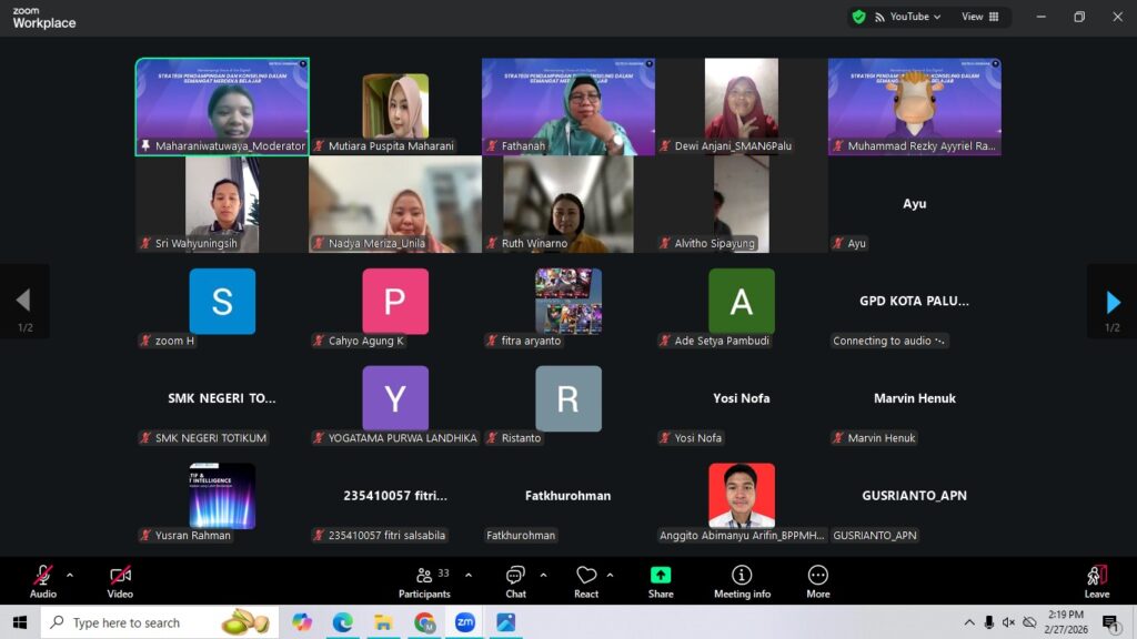 Pada hari Jumat, 27 Februari 2026, pukul 13.00 WIB, telah diselenggarakan kegiatan EdTech Webinar secara daring melalui platform Zoom Meeting dengan judul “Mendampingi Siswa di Era Digital: Strategi Pendampingan dan Konseling dalam Semangat Merdeka Belajar”. Kegiatan ini diikuti oleh lebih dari 30 peserta yang terdiri dari guru, tenaga kependidikan, serta praktisi pendidikan dari berbagai daerah yang antusias mengikuti kegiatan hingga selesai.