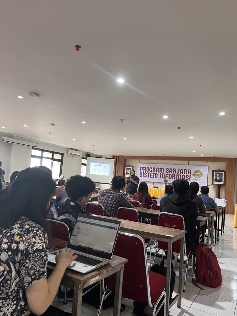 Kegiatan ini dilaksanakan di Ruang Seminar FTI Universitas Atma Jaya Yogyakarta Kampus 3 dan menghadirkan narasumber Bapak Lovandri Dwanda P. selaku Google Certified Educator, Bapak Yohanes Sigit Purnomo Wuryo Putro, Ph.D. selaku Dosen Informatika UAJY, serta Sion Felix, mahasiswa Sistem Informasi angkatan 2023 yang juga merupakan Google Student Ambassador Atma Jogja; seminar ini secara resmi dibuka oleh Kepala Departemen Informatika UAJY, Bapak Paulus Mudjihartono, S.T., M.T., Ph.D., dan dihadiri oleh kurang lebih 80 mahasiswa Sistem Informasi UAJY.